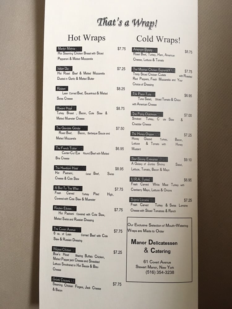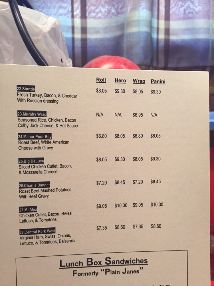 Manor Delicatessen Menu