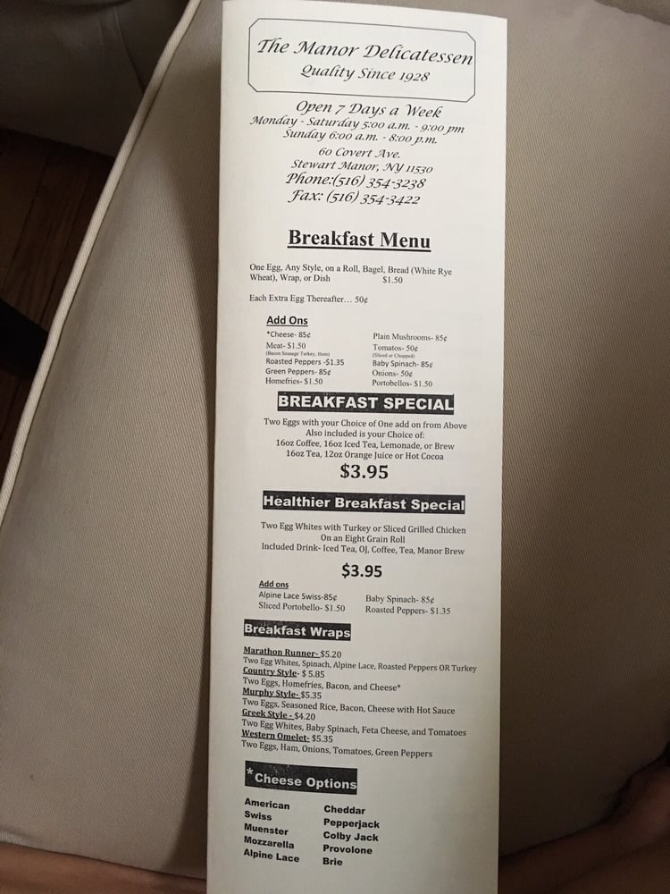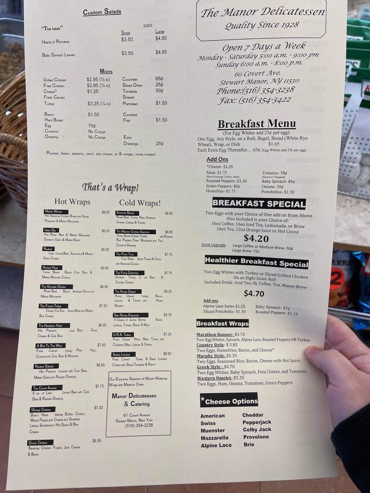 Welcome to Manor Delicatessen, a beloved local eatery nestled at 60 Covert Ave, Garden City, NY. Known for its vibrant menu and exceptional service, Manor Delicatessen caters to breakfast and lunch enthusiasts alike.